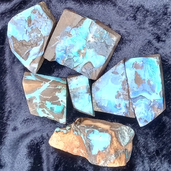 Check out this outstanding Top Boulder Opal Rough Parcel. An extra quality parcel of beautiful rough Boulder Opal. These are the best specimens out of several lots bought in person directly from the dude that mined it! Unusual and vibrant aqua colouring is a feature of this lot, along with blue, green sparkles and other flashes of colour. Some pieces show the veining which is an attractive feature also. Each piece has been cut to its best potential ready for jewellery or perfect as a mineral specimen in your Aussie collection. I feel like this one is a parcel I’ll regret selling, but that’s the way it goes in the rock trade. I love opal in the rough and this is a special little parcel on offer. Most photos taken wet, none do justice to this lot, which looks better in person. Boulder Opal is found only in Australia, making it rare gem indeed. Enjoy!